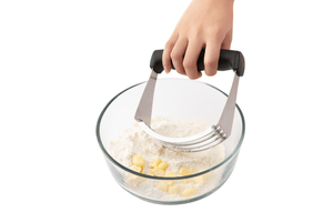 Pastry blender made of high-quality stainless steel, heavy-duty blades are enough to shred flour and butter, even mash cooked vegetables and nuts. Designed with comfort in mind, the soft-grip handle fits perfectly in your hand, allowing you a faster and after blending experience.